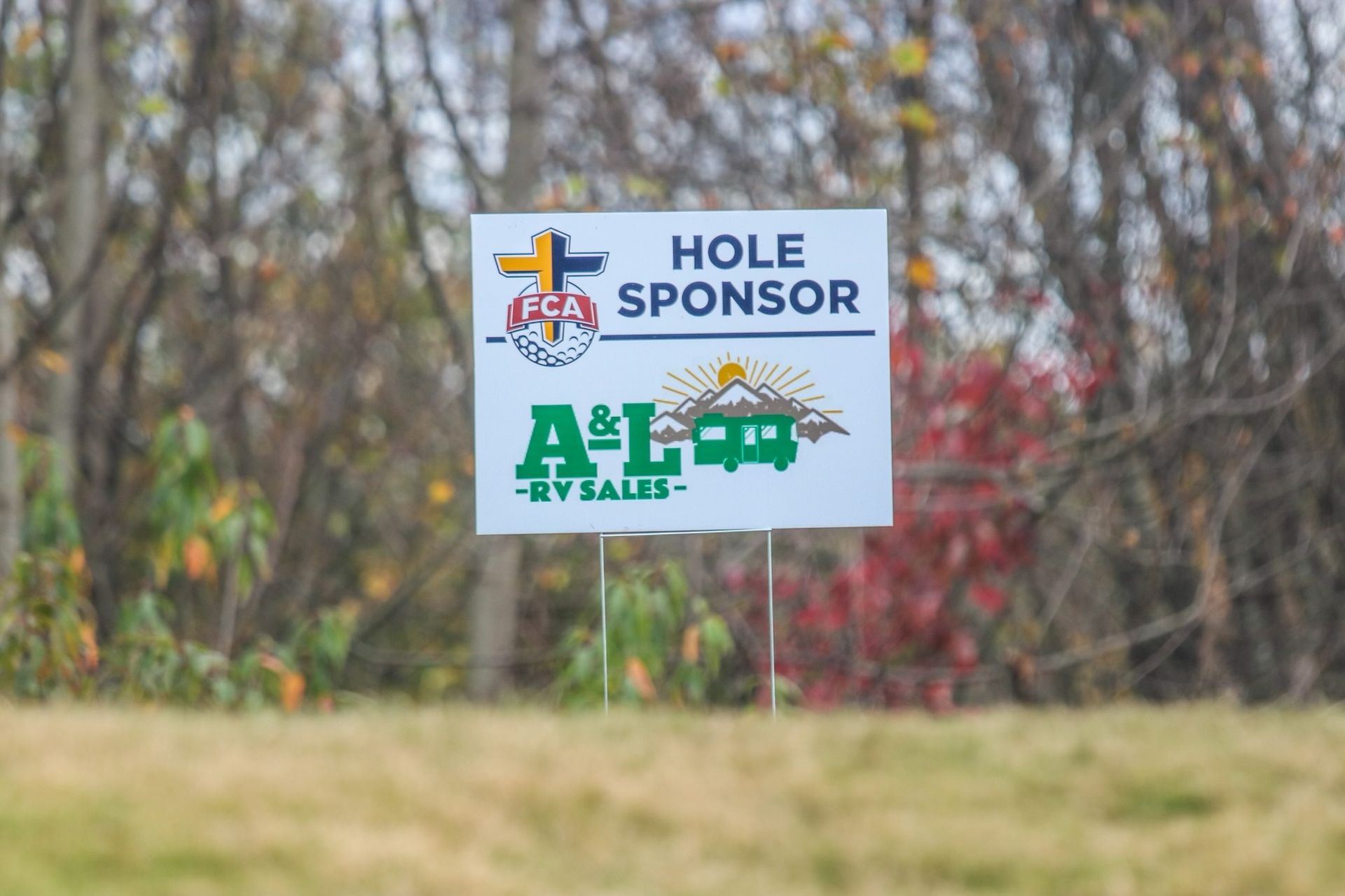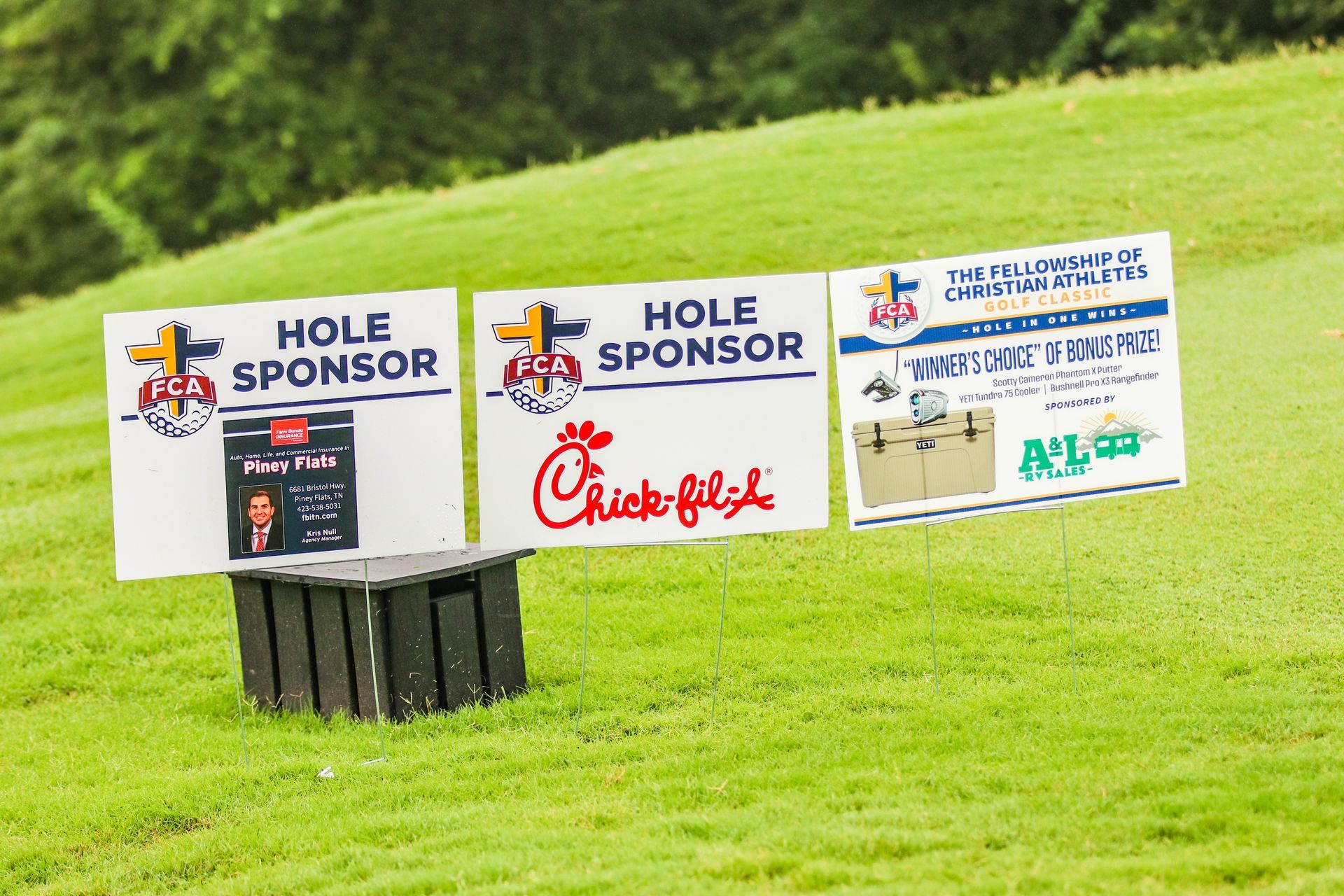 Tee sponsorship sign on the prize hole