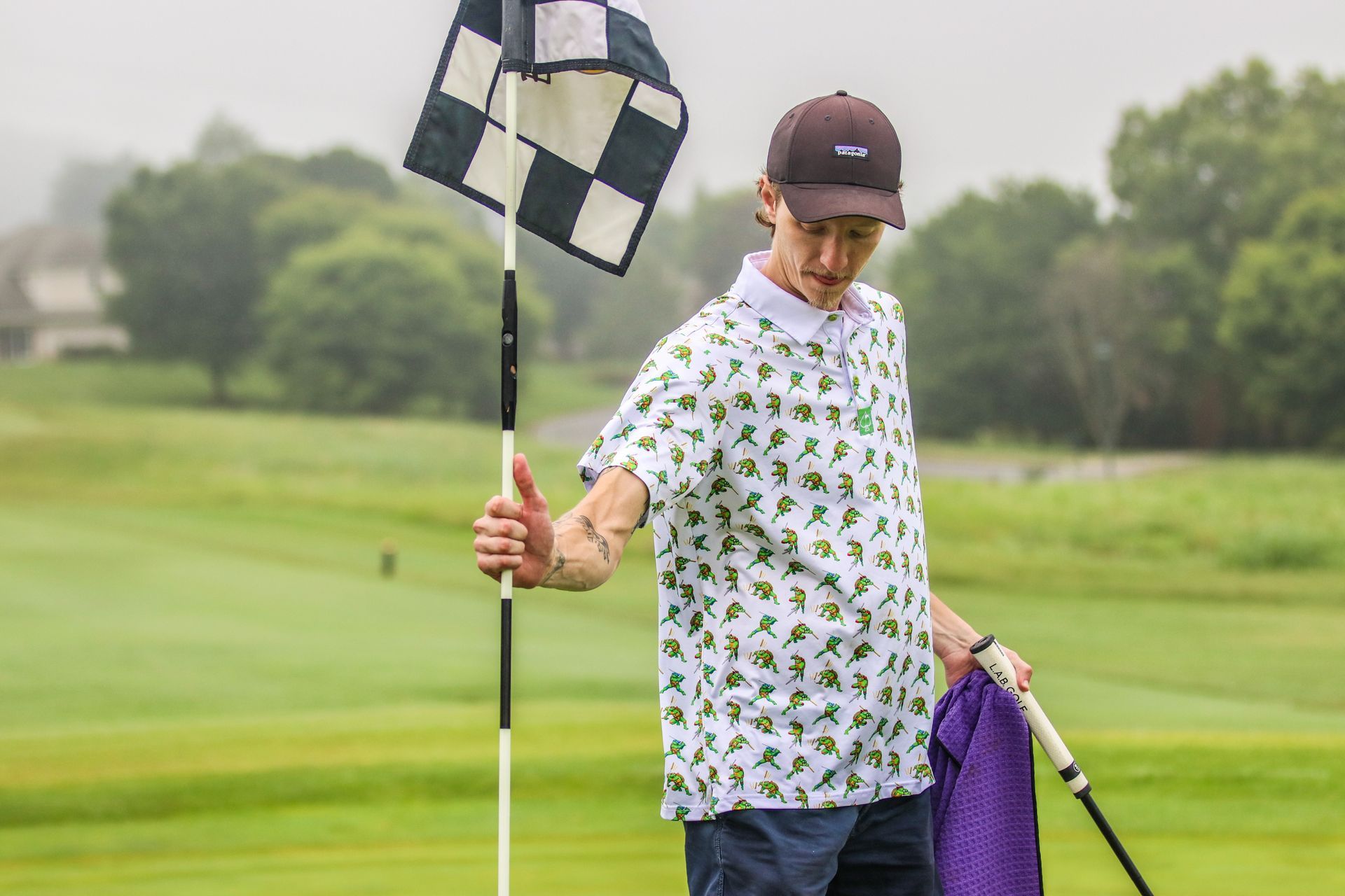 Custom logo flag on putting green